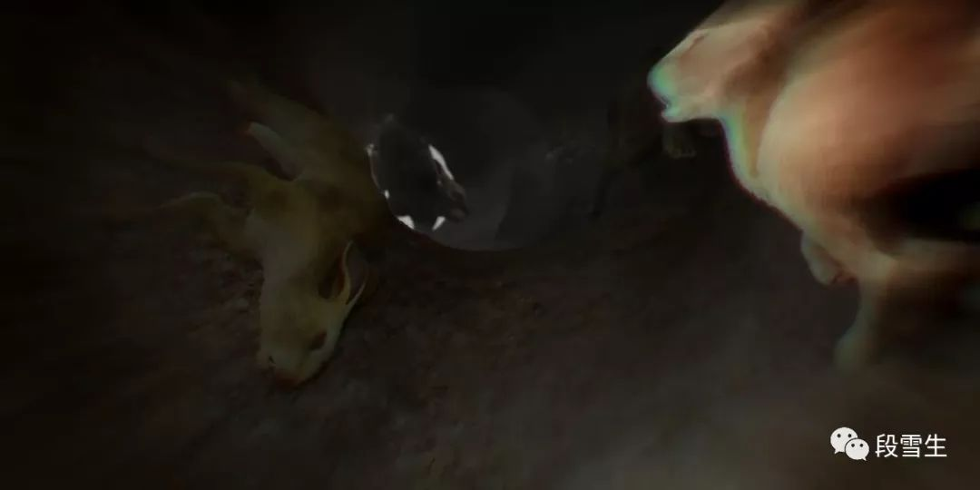 山梨首领的山洞归长毛守护,介绍长毛的时候,镜头是从下往上摇的,表现了他的高大威猛。长毛寥寥的话语和厚重的嗓音已经将他威严却温厚的性格描画出来。