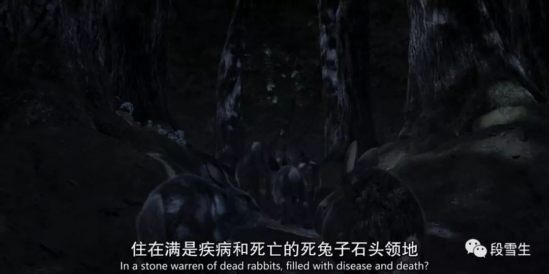 可以推测出的是,野樱草兔群本来有很多兔子,但是因为长期处在人类社会的边缘,经常遇害。这些痛苦的往事和无奈的现实,令他们形成了一套消极认命的宗教体系,认为一切都是天命,天命不可违,只能顺应,因为不会有更好的选择。n