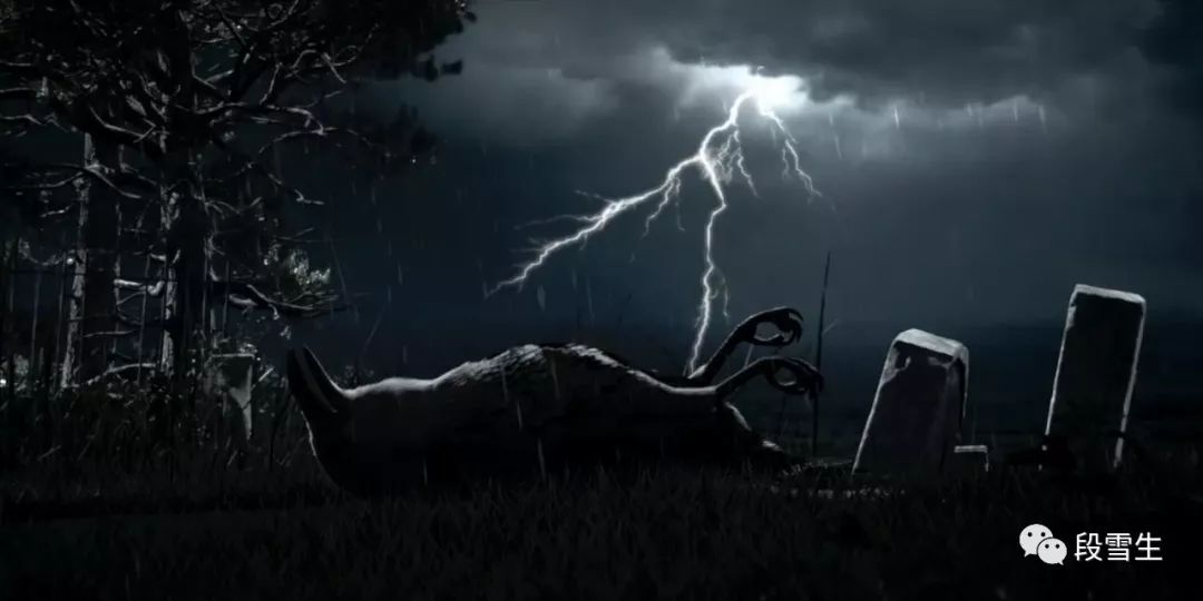 入夜,下起了雷暴雨。本剧在阴雨环境下的画风相当之哥特。