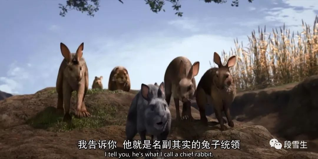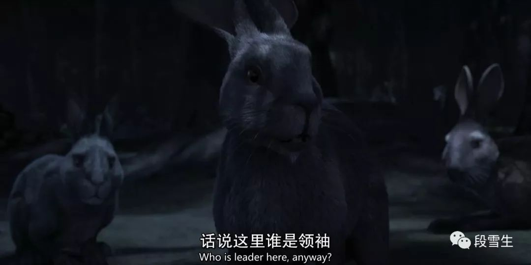 山梨首领显然没把小多子的话当回事,小多子情急之下出言顶撞了他,那一声“立刻!”的声效做了夸大处理,回音竟然传到洞外很远,整个兔群都听到了。这将紧张气氛进一步烘托出来。