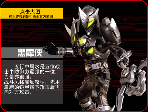 铠甲勇士 :五颗光影石分别能与形成地球万物的五行元素结合,形成五套能在光和影中穿梭战斗的铠甲-光影铠甲,召唤这些光影铠甲的人,就是当初这五颗光影石分别落地的五个村落中的人们,所以能召唤铠甲的人有很多。使用手镯变身