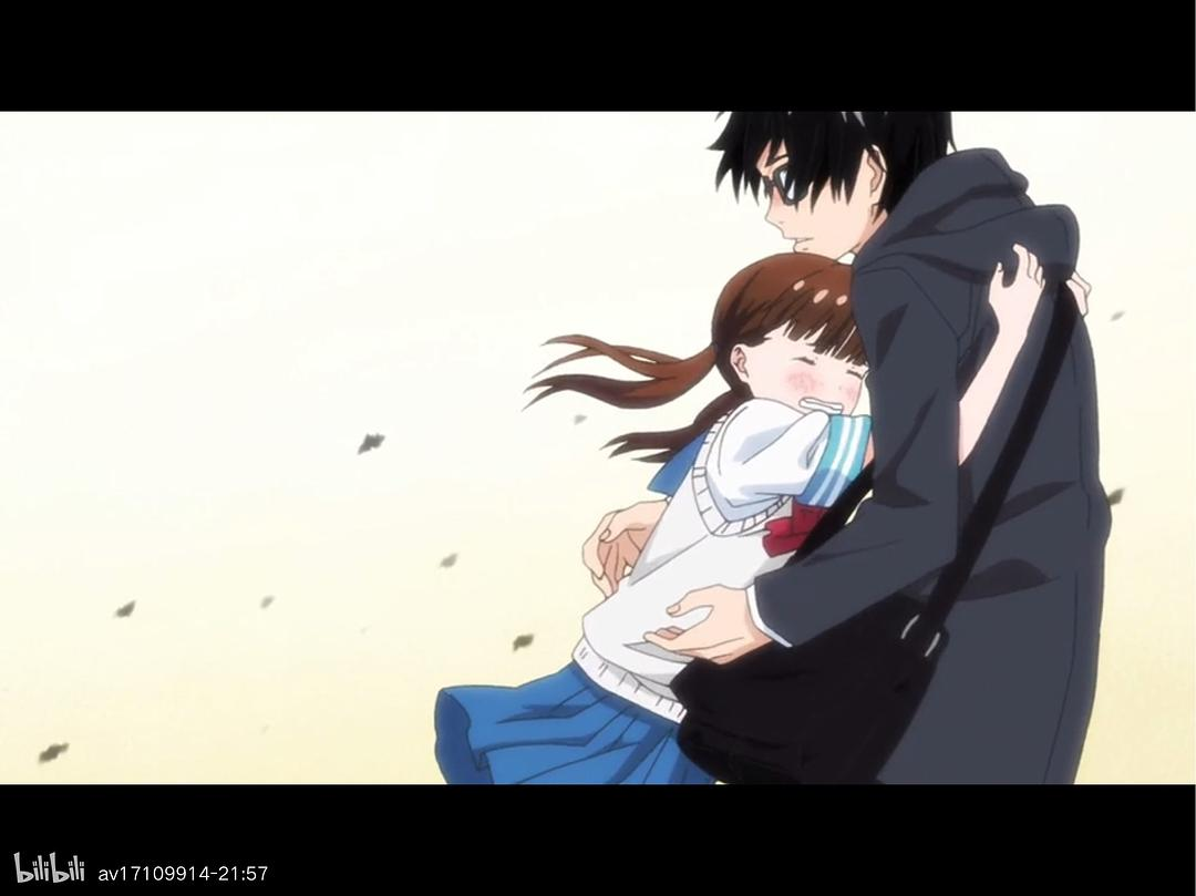 动画OP中有一个镜头,是和剧情中的一幕互相照应的,这个处理超级妙。本来是桐山回望宗谷,OP中变成了宗谷回望桐山。他们的影响或许会是相互的,宗谷会被桐山拉回人间,而桐山也会朝着宗谷的身影继续不断向前。