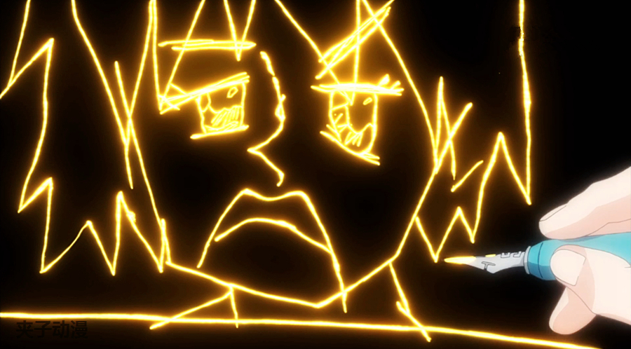 宅男泉水还在专心创作自己的原创漫画,其画风彪悍如毕加索,景虎看片时特意截了好多图,自己的创作欲望一次次被激发!此处必须有图,动画中很多故事发展都是由这部神作推动的。