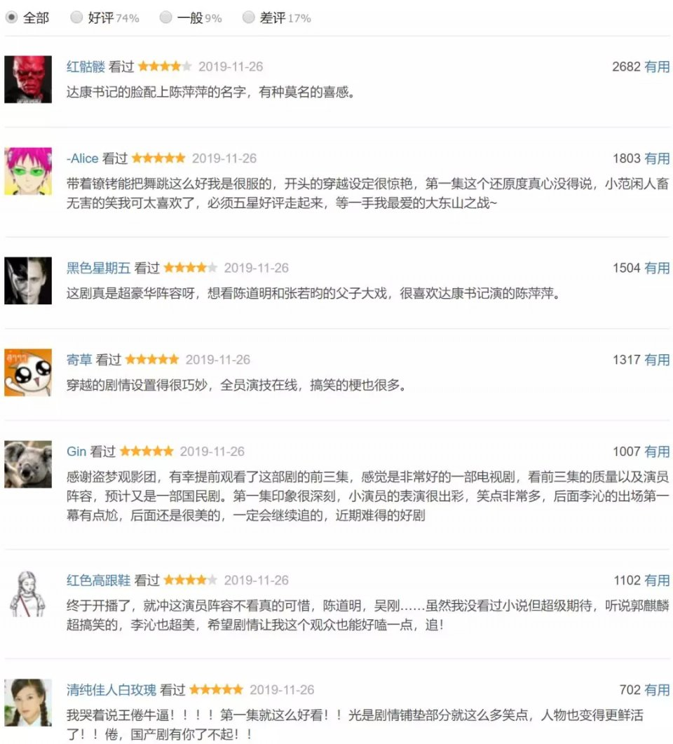 而《庆余年》就在本身水平不怎么样,又缺乏前期宣传的情况下,在几天内,活生生用上万条短评,几百篇长篇剧评,堆出了现在的高口碑。