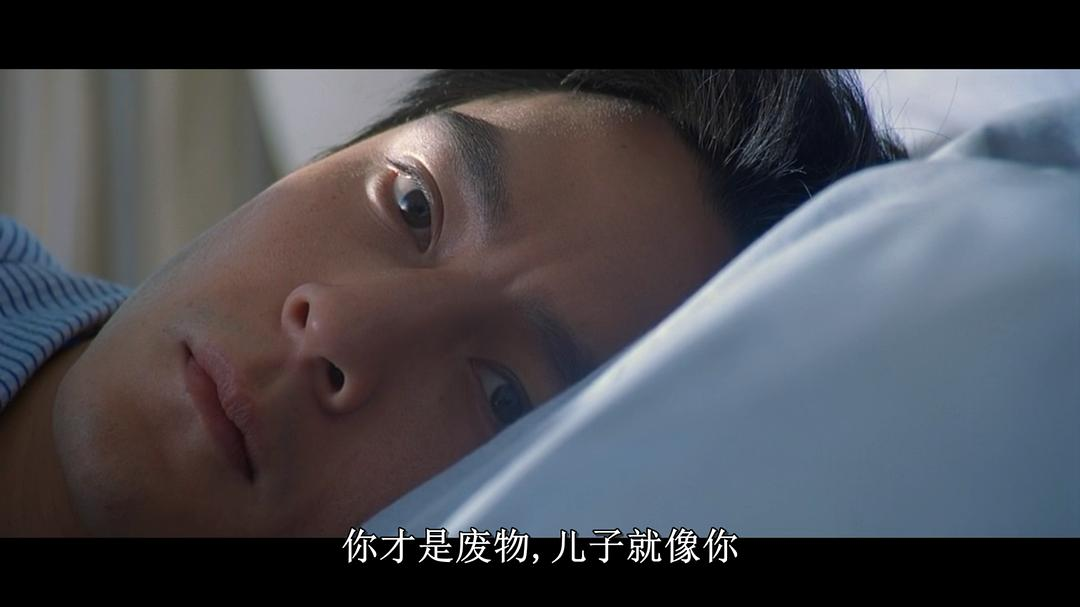在下一个镜头里,阿祖睁开眼睛表示开始接收父母争吵的内容。这时父亲恰巧说了一句“你才是废物,儿子就像你,被你宠坏了”