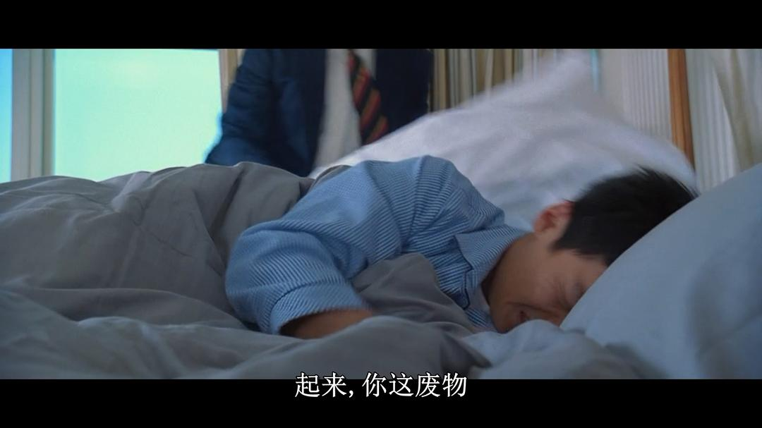 紧接着就是父亲抡起枕头的叫醒服务,边打边骂、言语粗暴、动作夸张。枕头抡了四下,手掀被子扔到地上,阿祖起身默不作声,然后从后侧手推打头部后脑,力度很大每一次都能让阿祖重重前倒而后弹起。