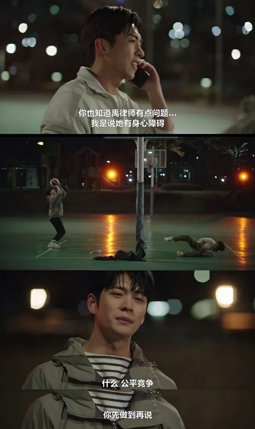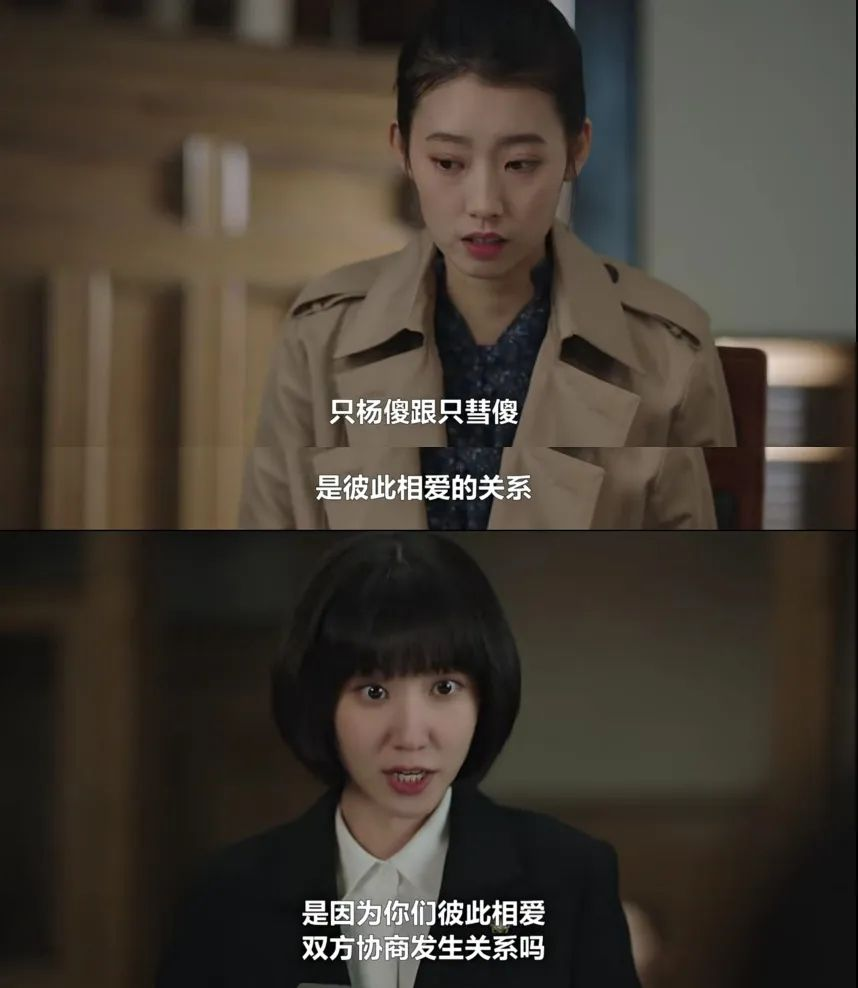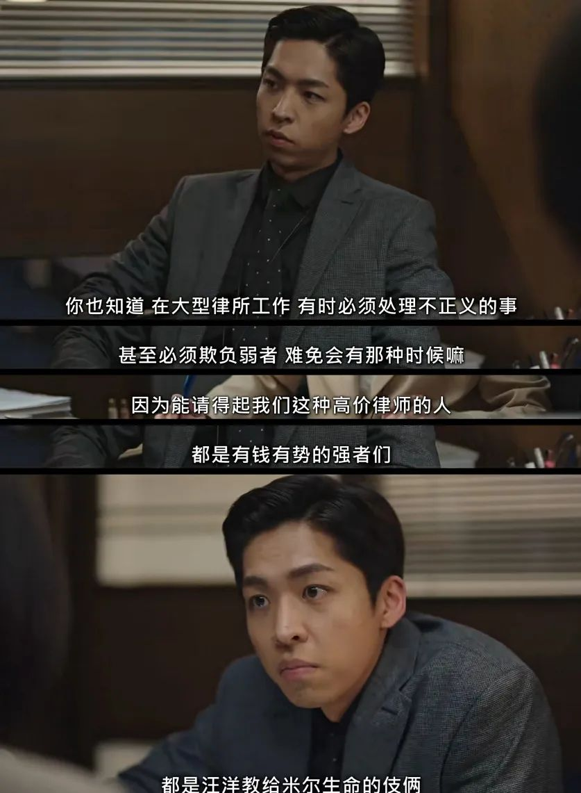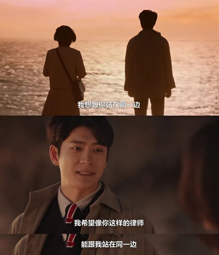 我认为权敏宇心理转变的背后,并不是“潦草地用爱解决问题”的叙事,当秀妍在法庭用英禑的论点辩论、无视上司时,权敏宇站了出来,和秀妍站在同一边,做出了最后的辩论,这一幕让秀妍第一次对他刮目相看。