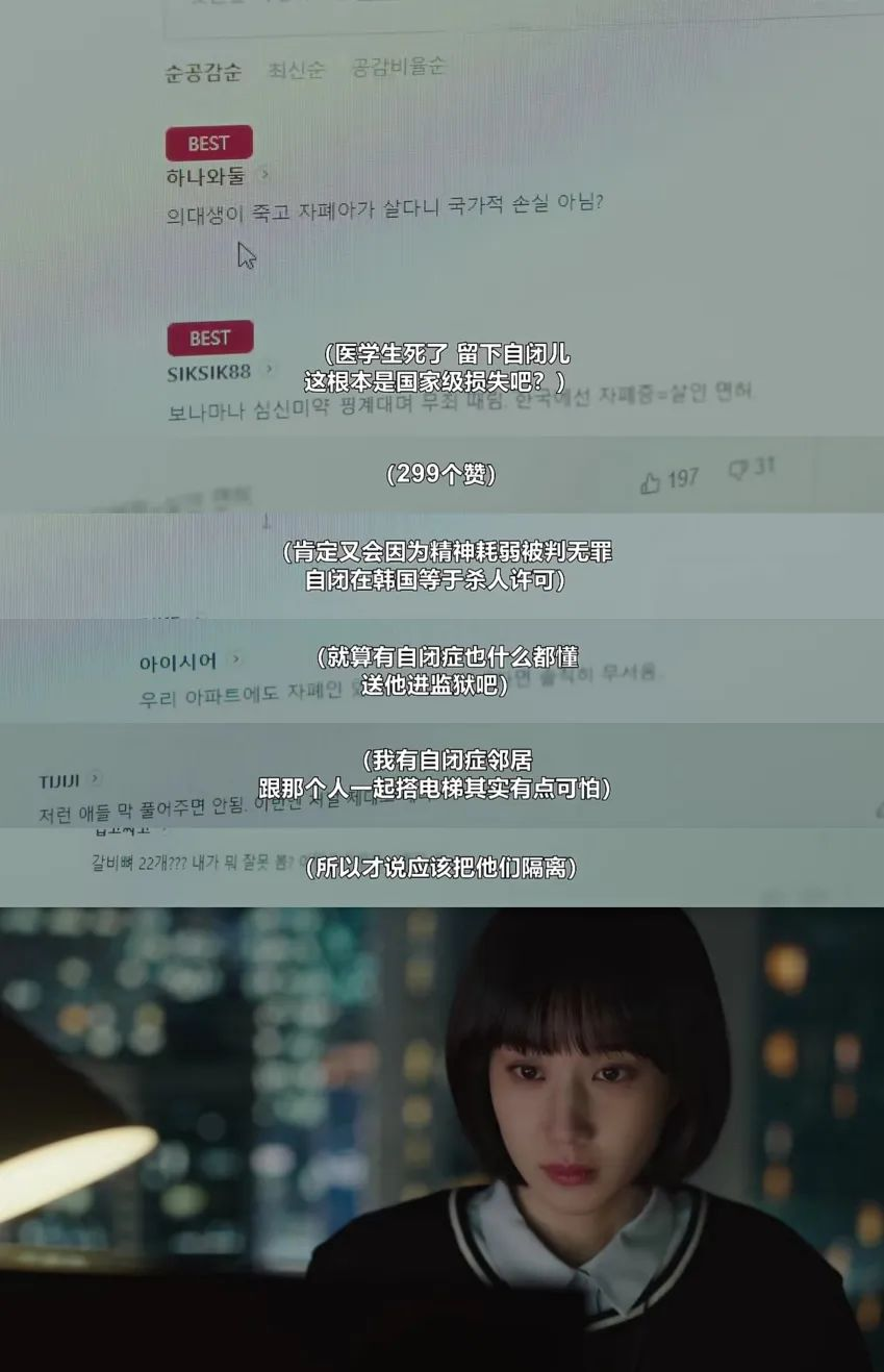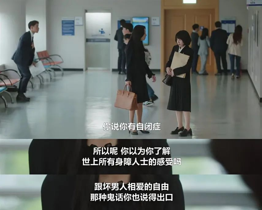 所以看到这部剧后来的走向,我觉得说它消费少数群体一点不过分。且不说编剧对自闭症的理解连皮毛都算不上,刻画出的女主表征在重度和轻型自闭之间反复横跳。就说少数群体受歧视的问题本身吧,距离解决还有十万八千里呢,这边就先安排上这种隔靴搔痒的电视剧了?