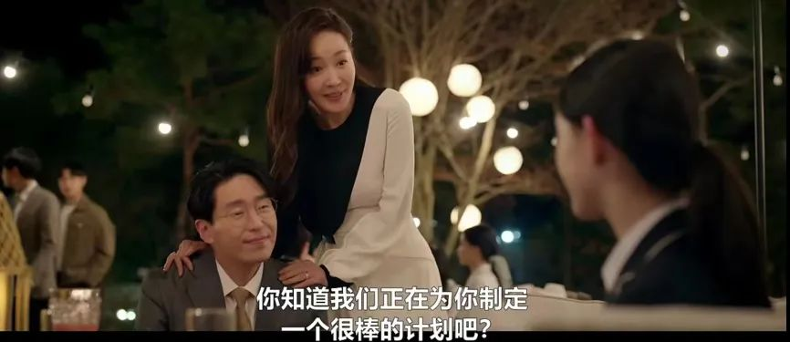 不单是主角,剧中对于反派的塑造也十分简陋,刻板而脸谱化的反派们永远在不合理的地点对着不合理的人说着不合理且故弄玄虚的台词。但编剧显然认为财阀之间的阴谋与政治斗争是观众更想看的,于是吊诡的一幕出现了:展现主角们家庭生活的篇幅几乎为零,却大量刻画了反派夫妇家中的场景、人物在其间的行动乃至陈年秘辛。且即便是脸谱化的反派,其背景故事都比吴氏姐妹们来得更加详实、耐人寻味。这其实仍然暗含着一种“上层社会的故事更有趣、更值得讲”的价值取向,以及创作者作为“上层”在俯视着观众的傲慢。