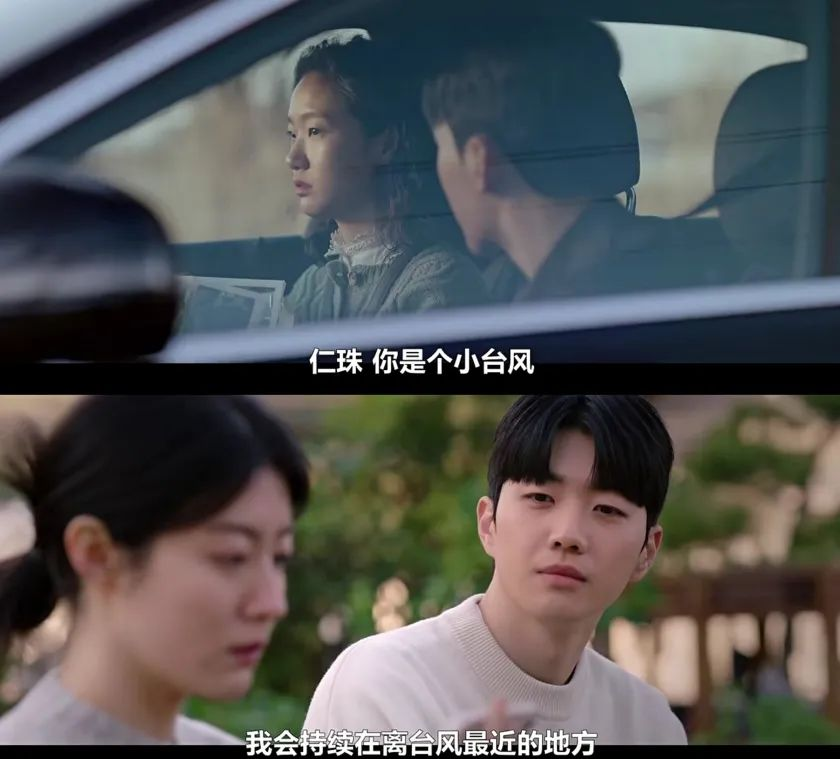 之前二姐明确表示,对河宗浩没有心动感觉,如果要描写二姐有心境转变,她应该对前半句话心动才对,然而她有反应的是后半句,“朴载相就是台风”,她的眼神似乎对这句话有所疑问。