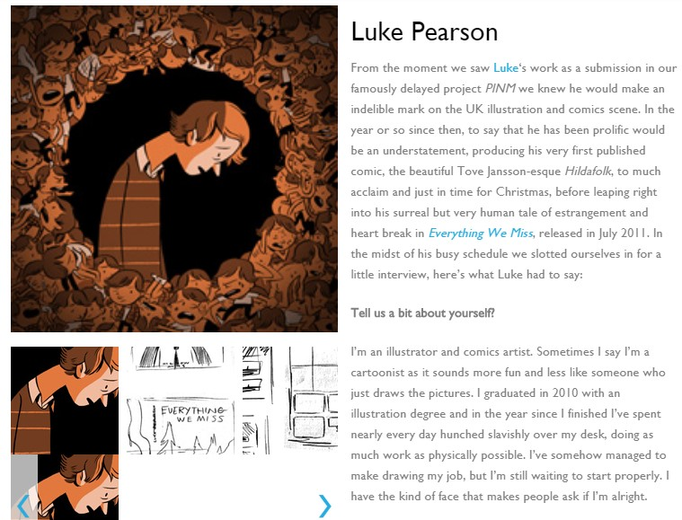13年的采访:http://tinypencil.com/the-magical-and-evocative-comic-art-of-luke-pearson/