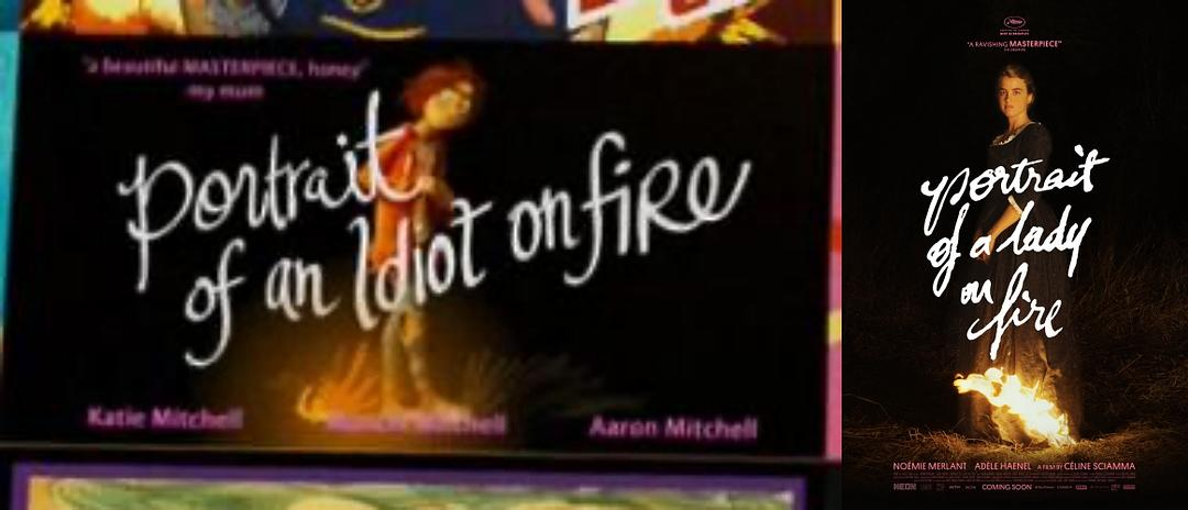《Portrait of an Idiot on Fire》(翻译:燃烧白痴的肖像),除了燃烧的是Katie自己,和《燃烧女子的肖像》(Portrait of a Lady on Fire)木有区别。