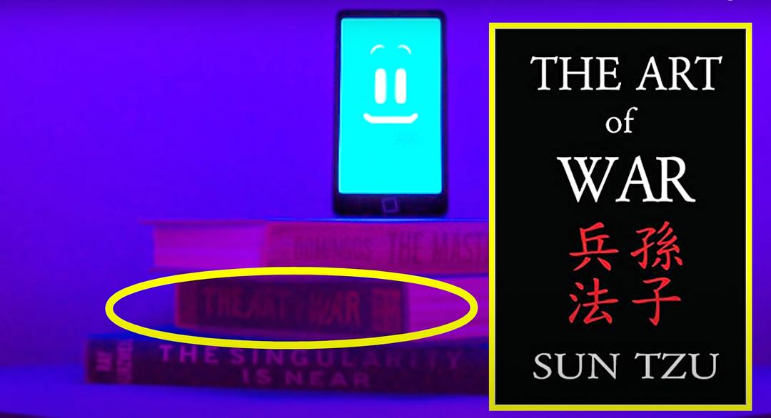 电影的反派是AI助理Pal,其名字似乎仿照《2001太空漫游》中的智能电脑Hal9000,但观众都感受到了浓浓的Siri感,这也许是十年来Apple被黑的最惨的一次。在Pal黑化后的第一次亮相时,我们发现Pal立在三本经典藏书上,似乎映射着Pal的黑化之路。