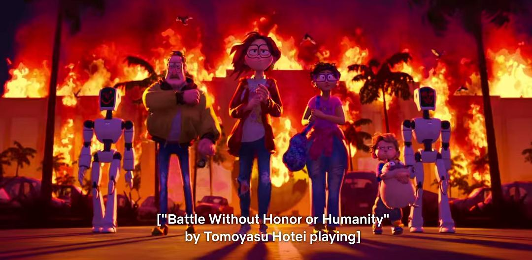 和所有合家欢动画大片一样,《智能大反攻》有一个光明的结尾。守旧老爸接受了智能设备,学会了上网。青春期的女儿打开了心扉,在网上与老爸互相关注、添加好友。妈妈不再醉心于利用社交媒体营造阖家幸福的完美形象。连一心痴迷恐龙的宅男弟弟也交了女朋友。米歇尔一家带着宠物狗和家庭机器人再次踏上开心自驾之旅。这一切如同他们通过一系列“神操作”战胜机器人、拯救全人类一般,欢乐,圆满,而又荒诞。
