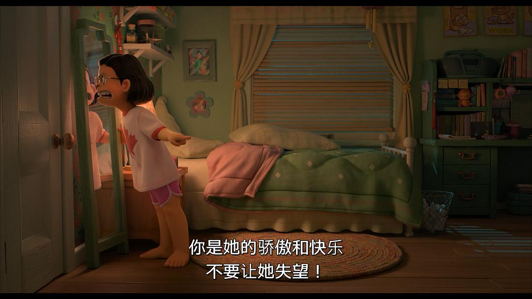 唉,唉,唉!!!来自家长的高期待,因为孩子永远达不到这种要求,最终就会变成孩子变成了家长的模样,孩子对自我的嫌恶!真的太让人心碎了,人性是如此的复杂迷人多面,为什么家长们就无法接受我们messy的一面呢!推开不好的一面并不能让不好的一面消失,只能让坏的一面越积越多直到忍无可忍,最终爆发。在动画片里爆发的是一只超级无敌巨大的破坏性小熊猫,但在现实生活中却可能是焦虑,抑郁,自残,乃至自杀……