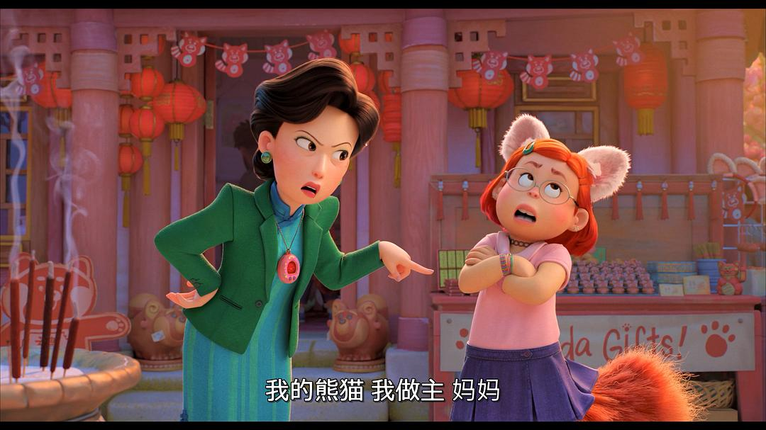 尽管妈妈觉得有必要和女儿谈论青春发育问题,尽管妈妈嘴上说着“不需要为此感到尴尬”,但妈妈的肢体语言写满了尴尬和不情愿……这种态度当然也会影响到美美。非常巧的是,Turning Red既可以指初潮也可以指生气,更可以暗示变形成红熊猫,不得不感叹这电影名太巧妙了!