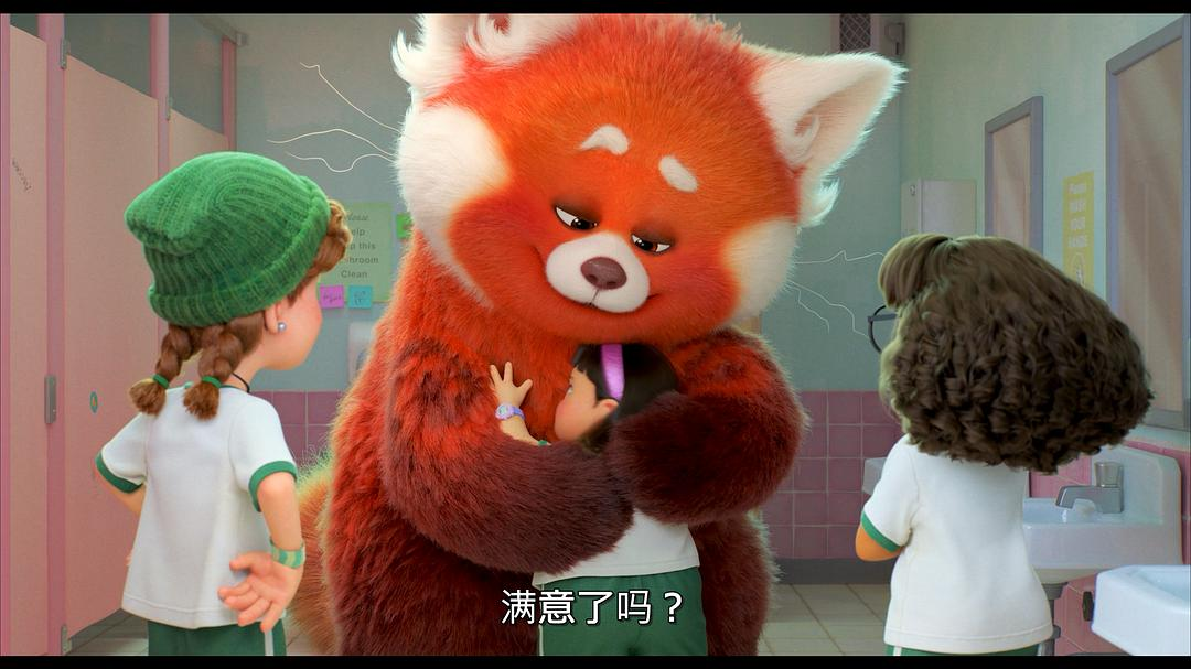 有一些女性主义表达,可是太浅层也不完整,让位于更主要的家庭关系和青春期成长议题。例如这股力量的起源是男性的缺位,女性必须释放内心的野兽来保护家人,但实际上把女性的自我压抑起来,让母亲们有着过度的保护欲和掌控欲的,正是父权社会的规训,是男性的在场。而片中固然有女性的互助,但如上所言,它更多来自于“只有女孩会继承变身力量”的背景设定,表达的也更多是友情和亲情,而非girls help girls。