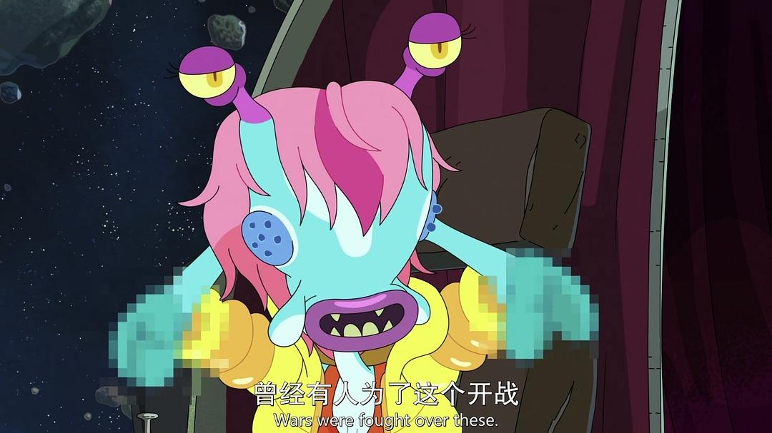 跟Rick上飞船的外星人是那个星球里“手肘奶”最大的,大到要打马赛克的程度,而整个星球就只有她穿长袖。