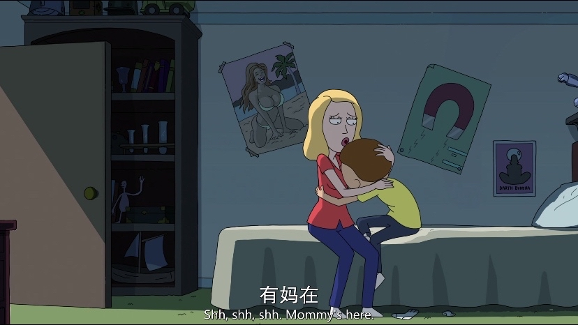对应第二集“Decoys家族”里Rick说Morty自我安慰的时候不一定要用衣服。