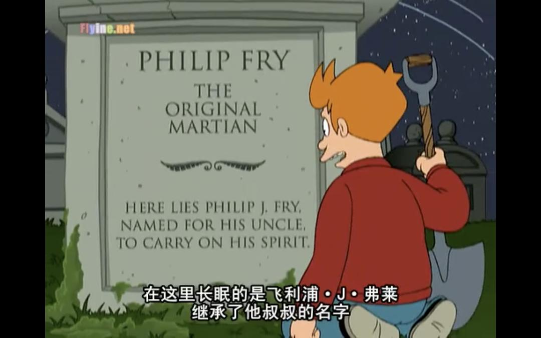 没有存款的F觉得自己很倒霉,说自己小时候曾经拿到过一片七叶幸运草,做什么都很顺利,自己的哥哥Y一直跟自己吵架,母亲是个体育迷,父亲积极准备世纪末日。三人去地下纽约城找幸运草,看到了城市里巨大的雕像,各行各业都很成功,还是去火星的第一人,竟然是Fry的名字。F非常生气,一定是我哥哥偷走了我的幸运草。回到公司教授说我的电脑听到你说名字,自己进行了搜索,给我预约了周五的活动还点了炸薯条,都是跟Fry有关的。哈哈,这就已经预测了未来大数据监听和人工智障了。F更加生气了,哥哥抢走了自己的名字,以及本来应该属于自己的成功人生。他要去盗墓。这个墓地还是围绕地球的,Lee查了下说还有几个小时到。三人组就扛着铁锨去盗墓了。B那是非常积极主动啊。F拔开墓碑下面的草才看到,误会了,英雄其实是自己的侄子,自己的哥哥为了纪念这个被冷冻的弟弟,给儿子取了弟弟的名字。竟然变成了温情片。F即使是有钱也白搭,他一个小时就能全部浪费完。