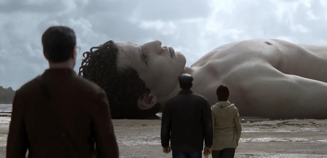 小说中,一个巨人的尸体突然被冲上城市边缘的海滩,主人公数次来观望巨人尸体,目睹游人们对巨人从敬若神明,到习以为常,再到毁坏与利用。