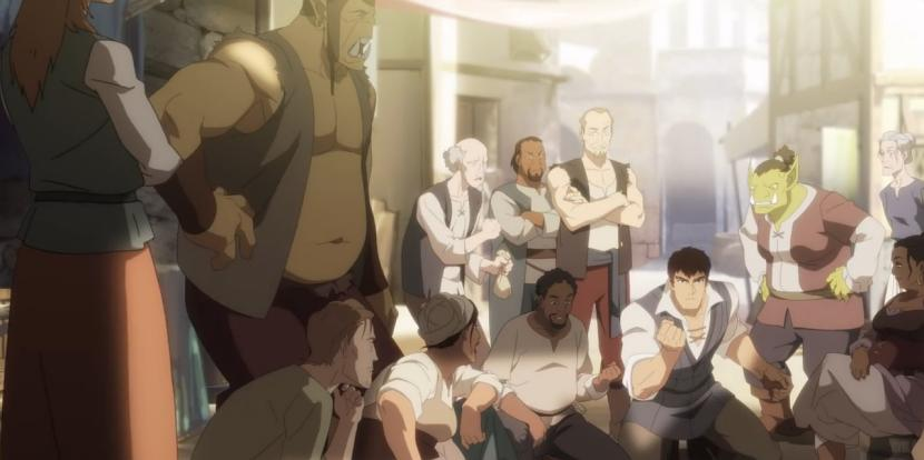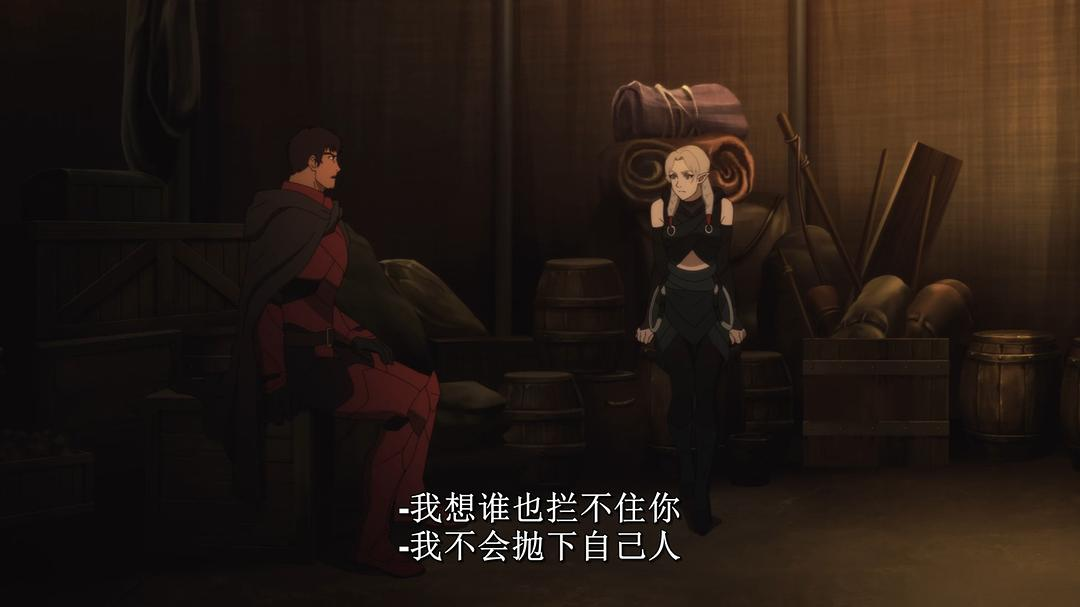 当然,悲情并不是指龙骑士Davion泛滥的桃花运。第一集的开场可以算是明快的,酒馆里的庆祝和打闹更是让人有一种这将是一部老少咸宜的便宜动画。然而这毕竟是netflix拍的dota动画,之后的剧情便一泻千里地黑化与虐心。然后Davion的命运就开始一步步不可救药地偏离正轨,这一切皆因为在人群之中多看了某人一眼。