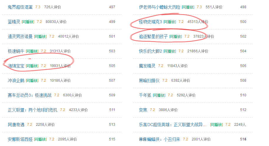 下图是我截的同样7.2分(红圈是我看过的,大家也可以看看同样评分的作品)