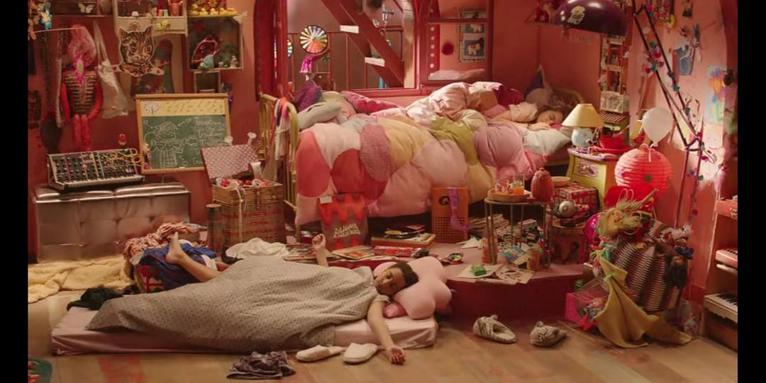 电影配色相当喜欢,温馨且不失童趣,暖心也不少天真。n家里看似杂物间实际上都是些可爱的小物品的堆叠摆放,也想要羞羞屋来遮掩害羞,也想要尖叫枕来发泄情绪,也想要灰猫咪来拯救心灵。在小楼的家里,一切物件仿佛都吸饱了阳光,充满能量。n电影围绕着小楼和妈妈两个“小孩”展开,她们很像,像到会同时陷入恋爱,爱上音乐男;会同时创作自己的作品,小楼拍动画,妈妈写小说;也会同时为外婆的到来而烦恼抓狂,脑子昏热。n小楼像幼稚了点的大人,妈妈像长不大的小孩,她们每天玩玩乐乐开开心心,但这并不是堕落的。n她们始终有梦想有追求,充满爱与希望,不被社会观念裹挟缠身,是自由的个体。n她们的生活是我们的理想,她们的理想是真正地生活。