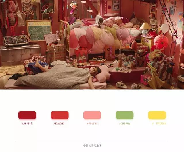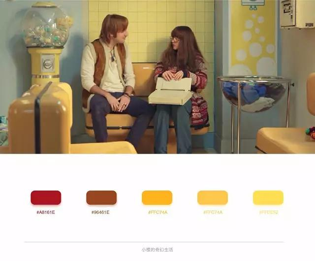 除此之外,画面这么好看,导演对其他的配色也是,非常的明白,很明显的对比,但是很和谐的色调相接,都是不扎眼的颜色,都是偏向对方的颜色。