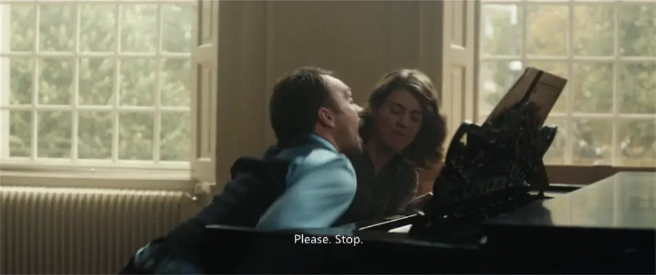 因为房子隔音效果太差,她只能拍打琴弦,这个细节,在电影里有体现。