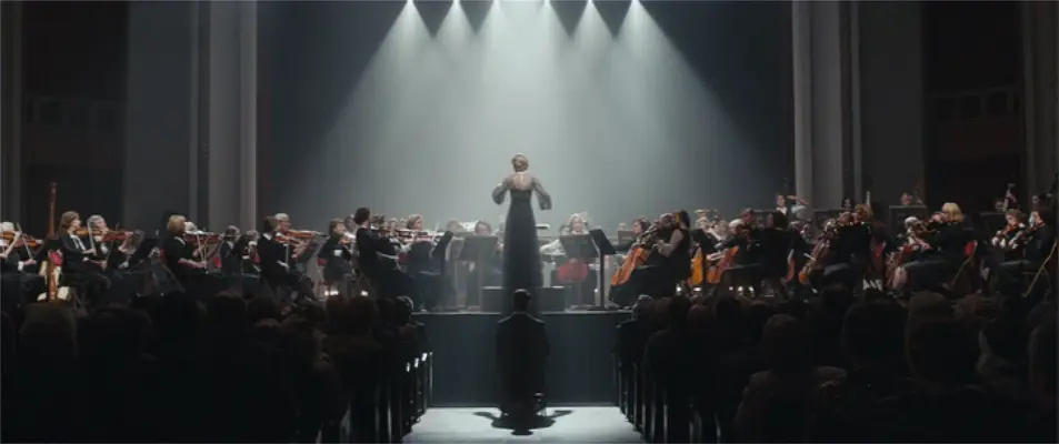 影片最后一幕的镜头语言,连我这样的外行都能发现:女主指挥的影子罩在台下汤姆森坐着的身体上,她挥舞双手,逆光的影,那是一双煽动的翅膀,燃烧生命,奔向她的梦想。