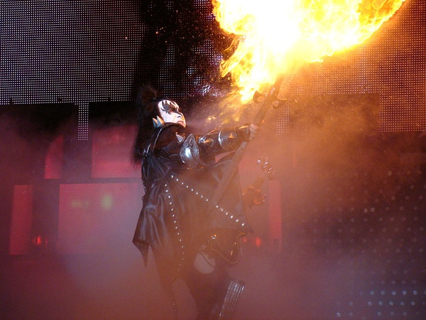 Gene Simmons,Kiss乐队主脑,从70年代滚到现在。以胡逼画脸,胡逼喷火,伸出他的大舌头四处胡逼舔而闻名。现重组乐队后四处巡演骗钱。