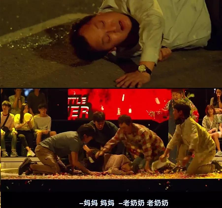 在车里准备自杀的大怂,此时才理解到贞顺这么多年的苦难和对自己的爱,挣扎着爬出车准备去找妈妈道歉。此时的贞顺却因为过度紧张导致心脏病复发,昏迷在了舞台上。