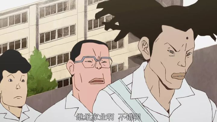 《乒乓》同样有着天才级的配角塑造,被主角月本吊打后周游世界寻找自我、却最终回到乒乓看台为主角的比赛落泪的路人“看海哥”,就是大家的心头好。但还有一个鲜为人道的配角,我认为很有意思——主角们在乒乓球部的学长,拥有奇特发型的大田。