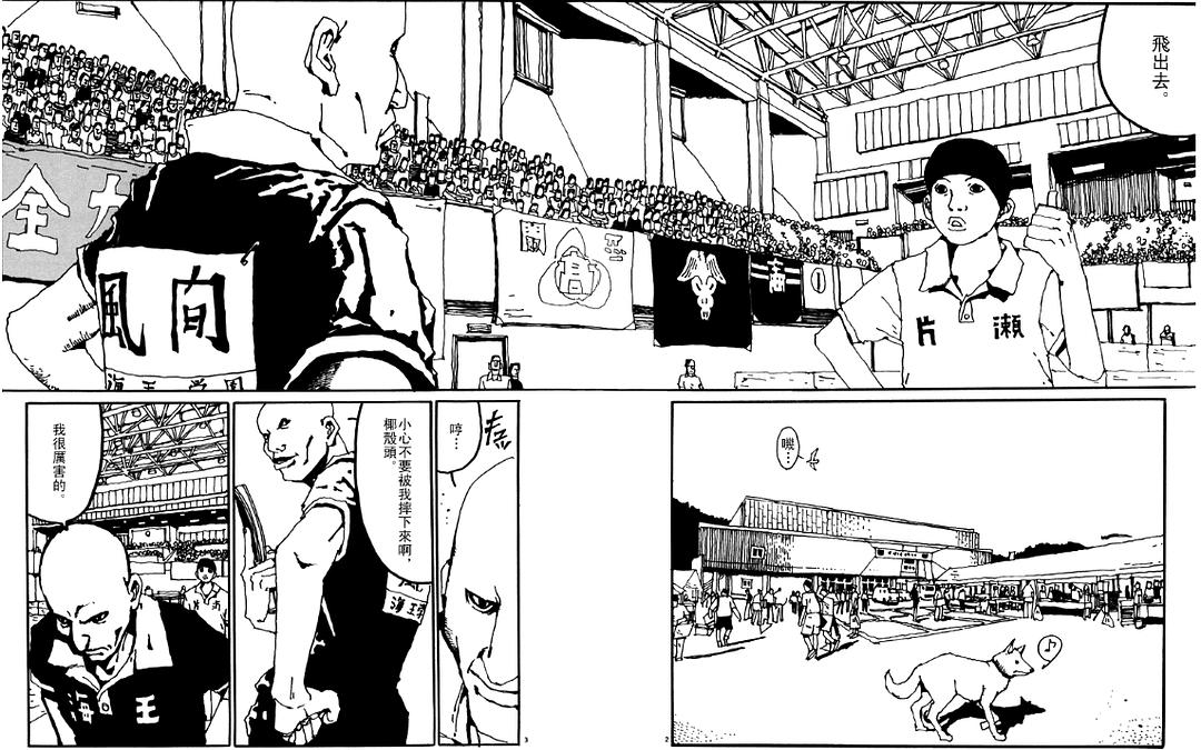 一般来说,除了情感类,运动类和热血战斗类漫画一个最会被津津乐道的话题就是作品里人物水平的排名。谁最强,谁第二,谁跟谁差不多,谁在什么情况下获胜的概率会大一些。通常,在这种排名里,除了主角之外每个人物的顺位都是固定的——主角当然是个不断升级然后走向巅峰的路子了。而在《乒乓》里,前两集里给出的人物排名和最后简直是截然相反的。