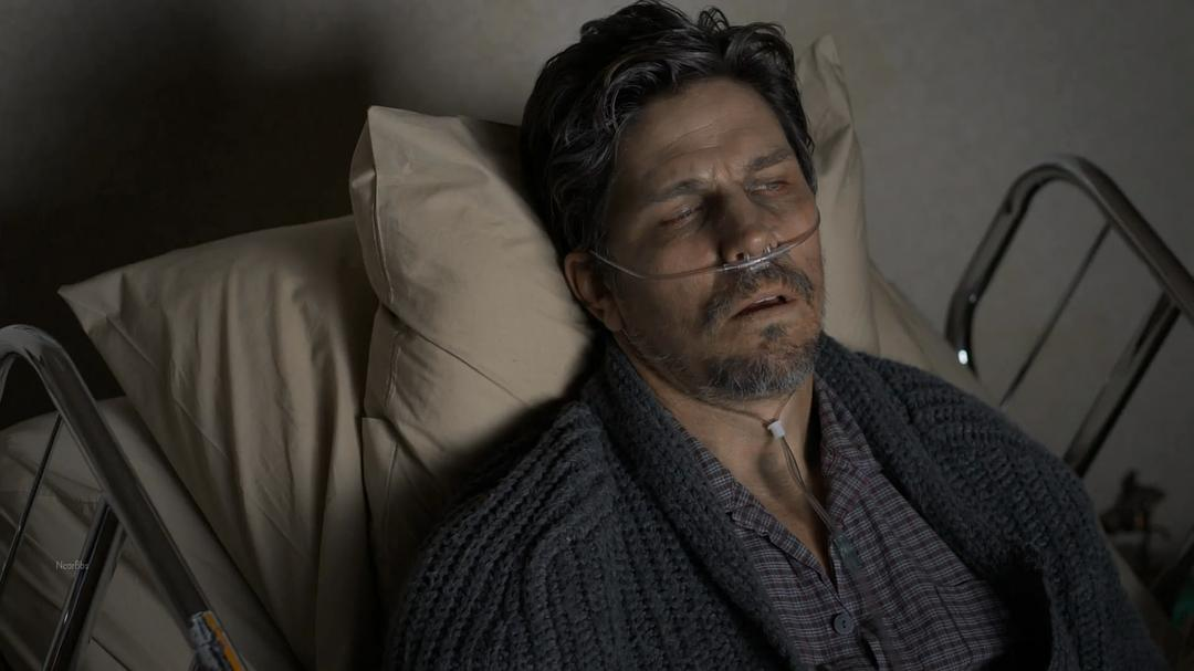 Shaun的语调越来越高,声音越来越响,脸憋得越来越红,动作幅度越来越大,于此同时,床上的父亲胸膛剧烈起伏,几欲张口说不出话来。在Shaun指责他害死了Steve的时候,他表现出强烈的疑惑(从后面的第二次会面我们可以得知,他想的是:老子还没提你害死了你弟,你倒好,反咬一口怪我们?!)最终,Shaun激动地摔门而去。此时,最能与他共情,也最为他着想的Lea毫不犹豫地跟随出门,是担心他。而Glassman心情复杂地向屋内这对夫妻深深看去,无奈地离开。