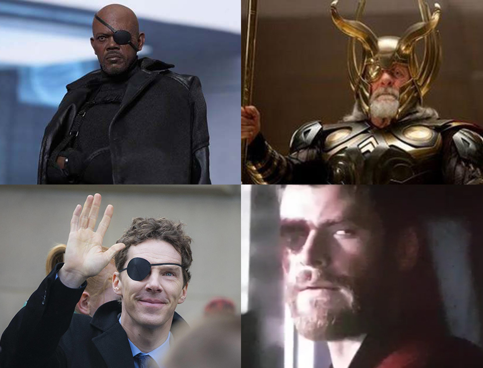 (我瞎编的)彩蛋:雷神自言自语说道:我瞎了右眼,尼克·弗瑞和哈利·哈特瞎了左眼,我随便挑一个把他的右眼抢过来,就刚好就有一双完整的眼睛了!