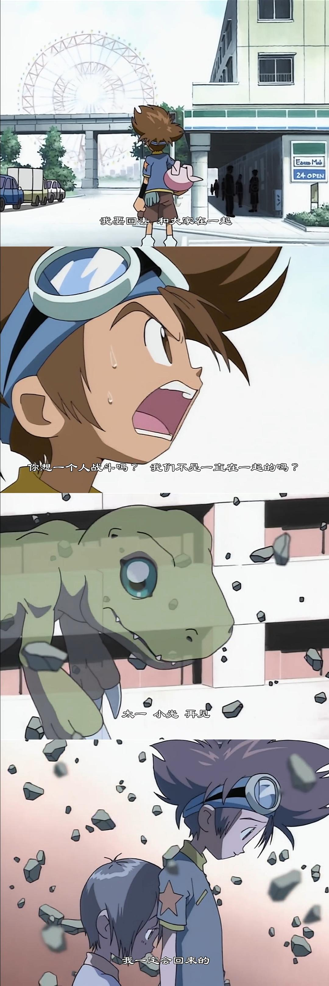 有人看到这会想:嗯?这不是和上一条反了吗? 其实这是因为 上述关于选择与可能性的命题 是故事表层借数码兽消失的设定抛出来的伪命题,而故事真正想讨论的 却是接下来的命题:成长与选择不意味着失去