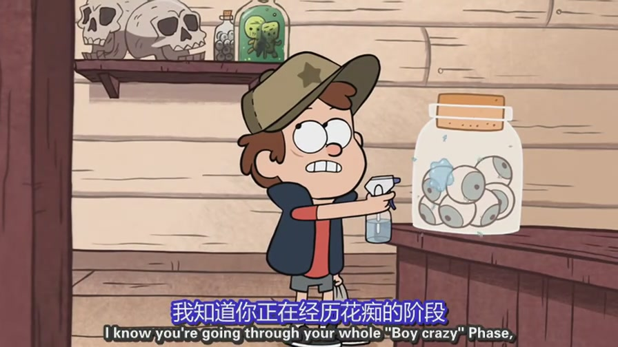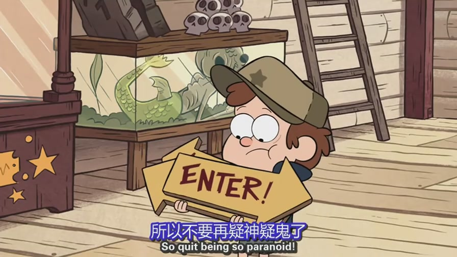 在这里,叔公斯坦经营着一家专门诈骗无辜游客的旅游景点“神秘小屋”,里面陈列着各种稀奇古怪的东西。