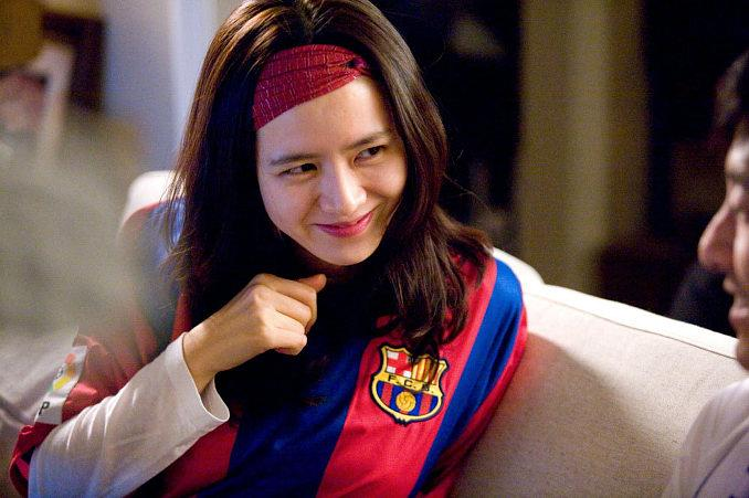 《妻子结婚了》是孙艺珍早期最重要的电影,这部电影让她真正封后,“爱情片女王”的桂冠牢牢戴在她头上。《爱降》中当然有致敬的片段,仁雅和德勋争执巴萨和皇马谁赢的场数多,仁雅是巴萨球迷,德勋是皇马球迷: