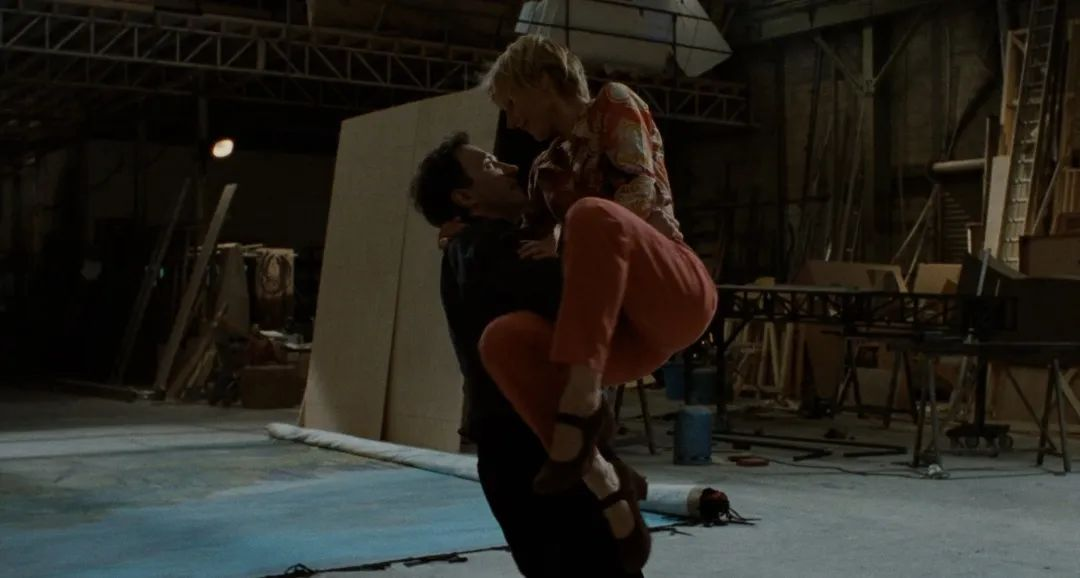 然而《高低脆》还要做得更多,我们清晰目睹每一位角色在展开双腿前,脚尖与地面微妙的摩擦,双手的肆意摆动,犹如一股能量聚拢的过程——飓风的形成,在我此前举过的例子里。但它并非破坏性的,而是一次洽谈的过程。与引力的会面和博弈?不如说,在《高低脆》里人们用舞蹈去搏击爱情,然而爱情总是令我们感到眩晕,它像引力一般诱惑我们的脚尖坠入到泥泞当中。因此那些加速时刻…爱情的诞生,我们在舞蹈中和对方面面相觑,而后相视一笑。不要忘记 Nathalie Richard 和 Marcon 的那一吻,在加速中暂停了,电影?(的质料),一个简洁但有趣的时间,我们来不及顾上太多,因为这既是眩晕的本质:失去时间意义的漩涡里,我和对方搅合在了一起。