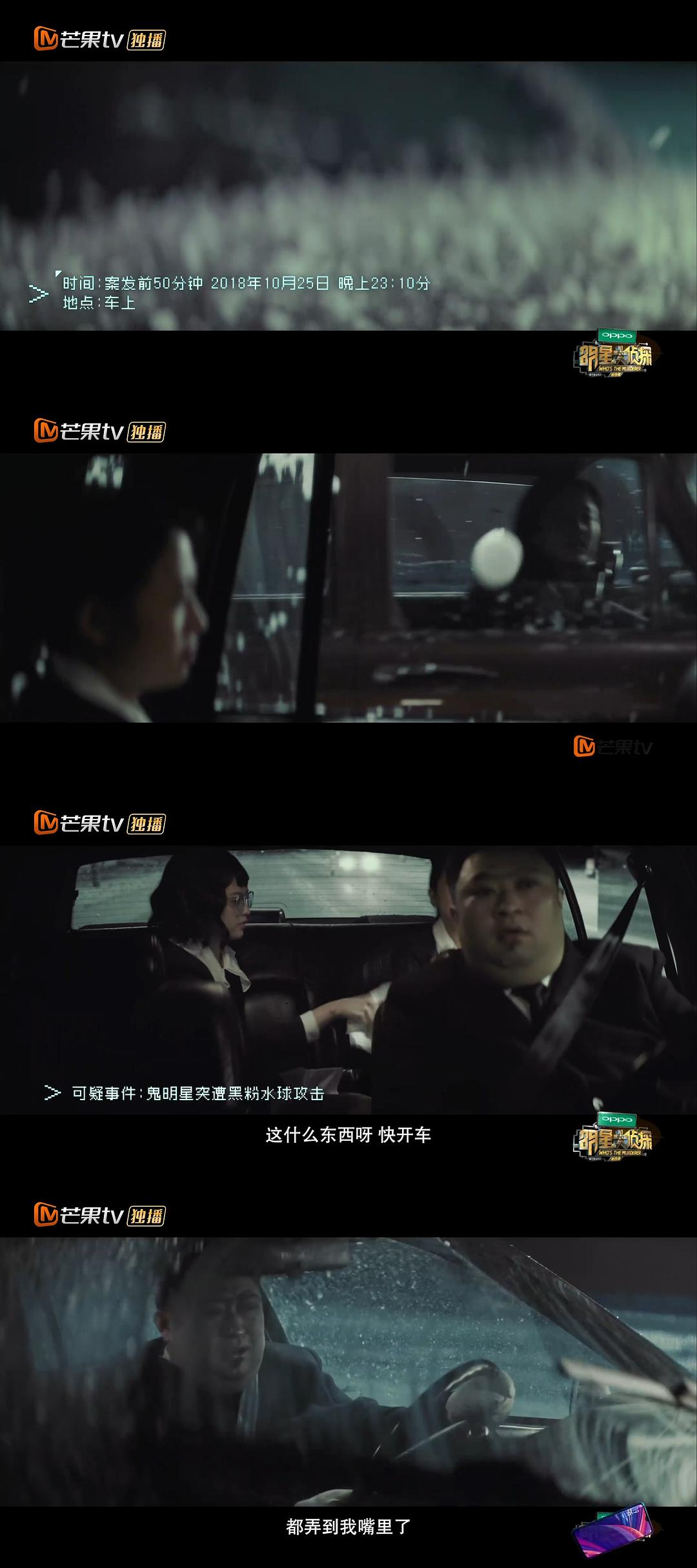 不过可以注意到的是,因为汽车追尾停下,花花超车上来扔水球,那之前鬼明星的车窗不是打开的,如果要停下来查看情况,也不需要摇下鬼明星座位的车窗。之前王师傅点赞过花花,所以这件事就存在花花和王师傅合谋的可能性。也许水球里就有加入红颜祸水毒药,根据台词确定水有入嘴,但是分量可能不多。不过这种可能就是合谋了,而凶手只能提交一人。