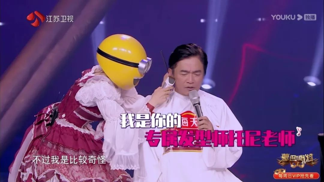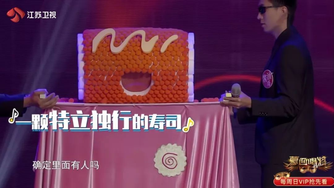 “首先,我要吐槽面具。这一季又是寿司、又是冰柜,我看这个节目不该叫蒙面唱将猜猜猜,干脆叫那些在柜子里唱歌的人好了。”