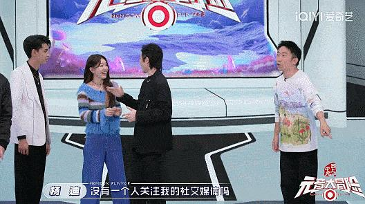 只见张雨绮一整套小心翼翼的走位下来,被杨迪一秒破功,提醒要去抽信封而不是抽广告位的盒子;