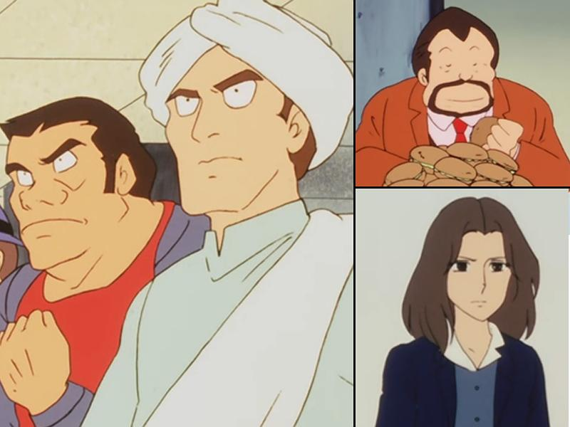 完成具如此风格和内容的作品,恐怕这是押井守做得最开心的动画了吧,本作自然并非早早就存放在押井守的脑中,也应当不只是分析后的客观表现。在《福星小子》的时候,虽然只是简单的构想,但已经有将立餐师构成体系的欲望——图 8为当时出现的立餐师们,萨布、牛五郎、哲和阿银,而当时的立餐师分为死赖(居残り)派、破坏(クラッシャー)派、帝国(帝国)派、流浪(さすらい)派、演技(演技)派等,在押井守脑中发酵了二十余年,现在已经呈现了完全不同的样貌。