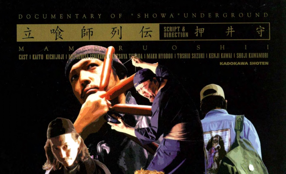 “爱拉面的人更像是欲求不满的革新派,因为拉面充满着市街的味道。”好食拉面的寺山修司对区区平民食物给出了如此奇妙的见解,押井守是否受其影响而创造出白食荞麦面的立餐师这种同样奇妙的职业自然无从得知。押井守自己谈道,小时候经常看见大爷小孩在路边站着吃饭,而到了现在这却被当成是应该教训的行为,拍这种站着吃饭的店里发生的故事就很开心。这种所谓怀念过去的说法若是由其他人道出也许还能相信,但各位观众透过押井守的层层滤镜看到这立餐荞麦面馆的光景后,很难想象只是为了怀念过去需要做到这个地步——实际上,早在八十年代初,押井守就有意无意在参与的作品中添上立餐师,到了现在,好像立餐师的形象在“鸭片”里出现的频率都能逼近高达里出现面具男了。显然,如果关注押井守,是避不开立餐师的。换个角度讲,押井守愿意将酝酿已久的立餐师世界以这种“合辑”的形式放送,倒不如说让爱好者图了方便。要知道,从押井守数多动画、漫画、电影中搜寻并拼凑这立餐师的拼图可不是一件简单的事情。押井守自己蓄谋这部《立餐师列传》也有十年以上——《无罪》参与戛纳电影节时,石川光久发言道,如果没拿奖,就让押井守拍部自己想拍的片,终于被押井守抓到了机会。不过,由于预算问题,这部片只能由押井守的亲戚朋友们亲身上阵(女儿女婿都没逃掉),一直以来被认为是“押井守闲暇之余不太重要的一个小品作”。