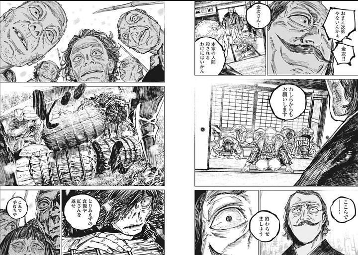 在另一边,在银被流放的这段时间村里发生了百年不遇的大饥荒,这种情况下就是地主的家里也没有余粮,地主后藤金次把食物囤积起来,自己在家里享乐。察觉到了这一点的正宗立刻鼓动当时已经民怨沸腾的村民们一揆,这既是为了逼迫金次开仓放粮,也是为了履行和银当年的约定。