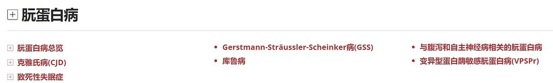 目前,已知的由朊病毒引起的其他退行性疾病包括克雅氏病(CJD)、GSS病和致死性失眠症 。