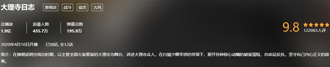 比如在豆瓣上评价8.35分,正如网友评论:“众所周知,烂片出神曲,唯独大理寺日志,优秀的国漫+神曲,跳opep必后悔”。所以可以看得出来,大家对于《大理寺日志》、《大理寺日志2》都有很高的评价。