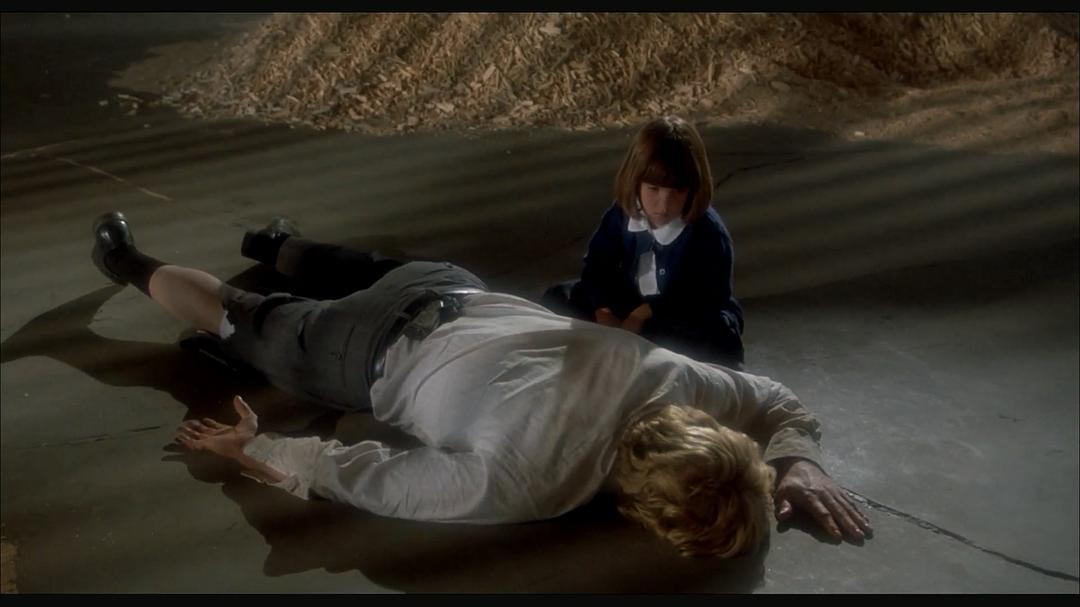 当小女孩看着带伤逃跑的卢卡斯躺在冰冷的水泥地上,她做了个很可爱的动作,然后像个小兔子般地蜷缩在老人身旁。这就是一个孩子最自然的童真,真的无比可爱。